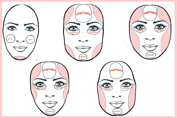 Hiermee accentueer je de delen van het gezicht die mogen opvallen. Dit doe je d.m.v. lichtere kleuren. Je hebt tegenwoordig speciale highlighters, maar een lichtere kleur oogschaduw voldoet vaak ook.